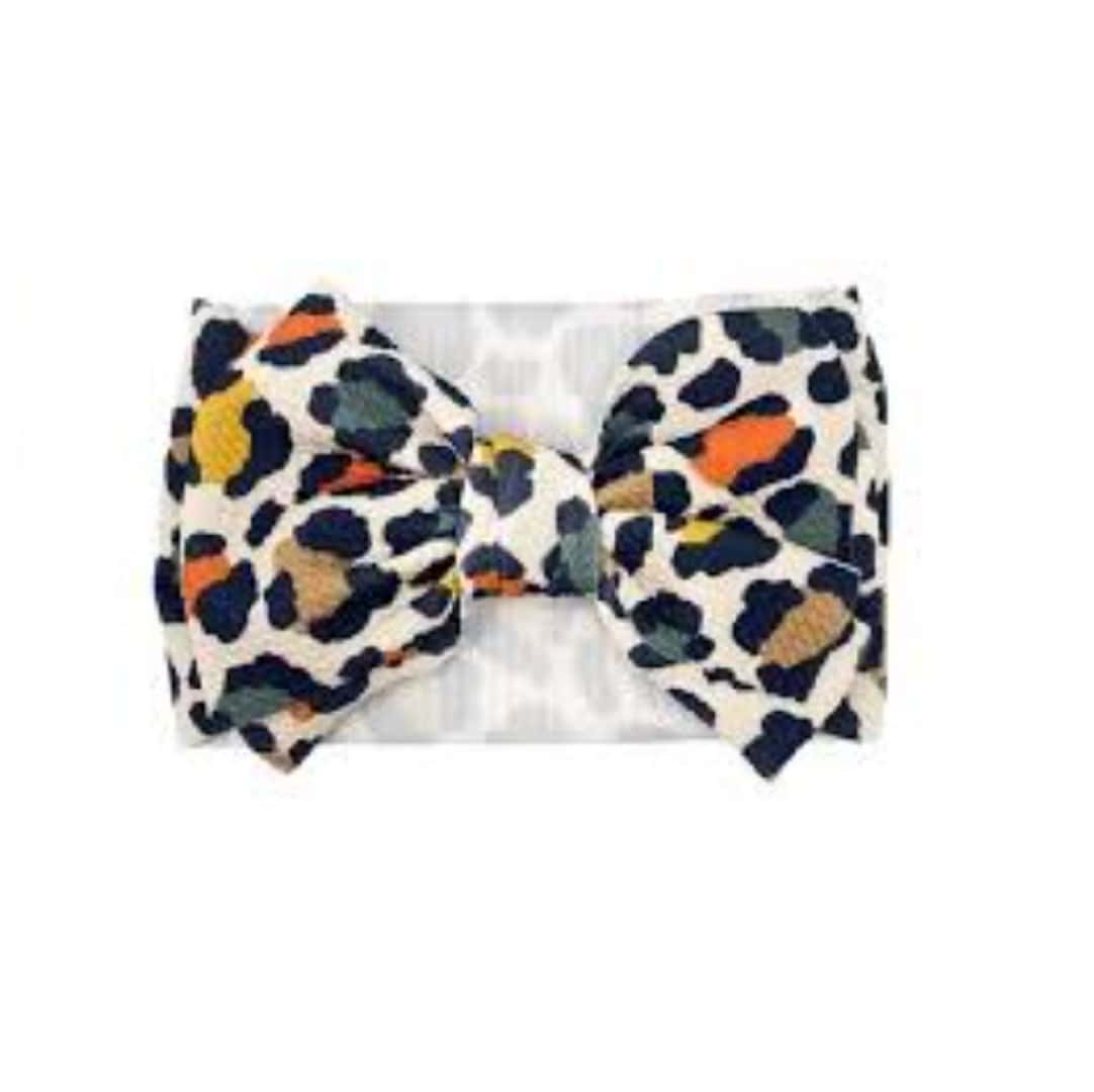 Παιδική- Βρεφική Μαλακή κορδέλα μαλλιών με μεγάλο φιόγκο 7” inches 5 μηνών-7χρονών waffle- Leopard colours