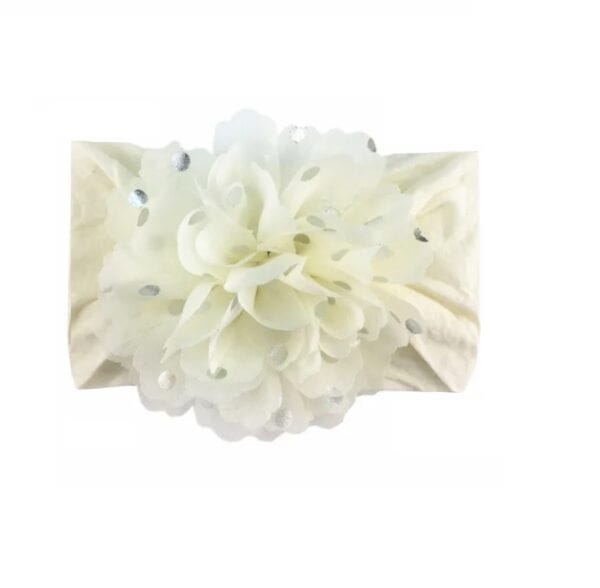 Παιδική- Βρεφική Μαλακή κορδέλα μαλλιών με μεγάλο λουλούδι 0-8 χρονών Ivory Silver