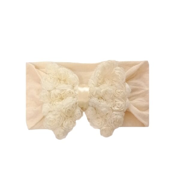 Παιδική- Βρεφική Μαλακή κορδέλα μαλλιών με Τριανταφυλλένιο φιόγκο 4 inches 0-6 χρονών Beige