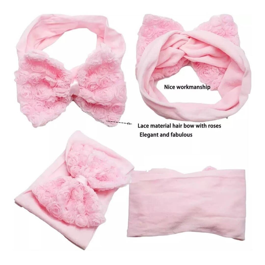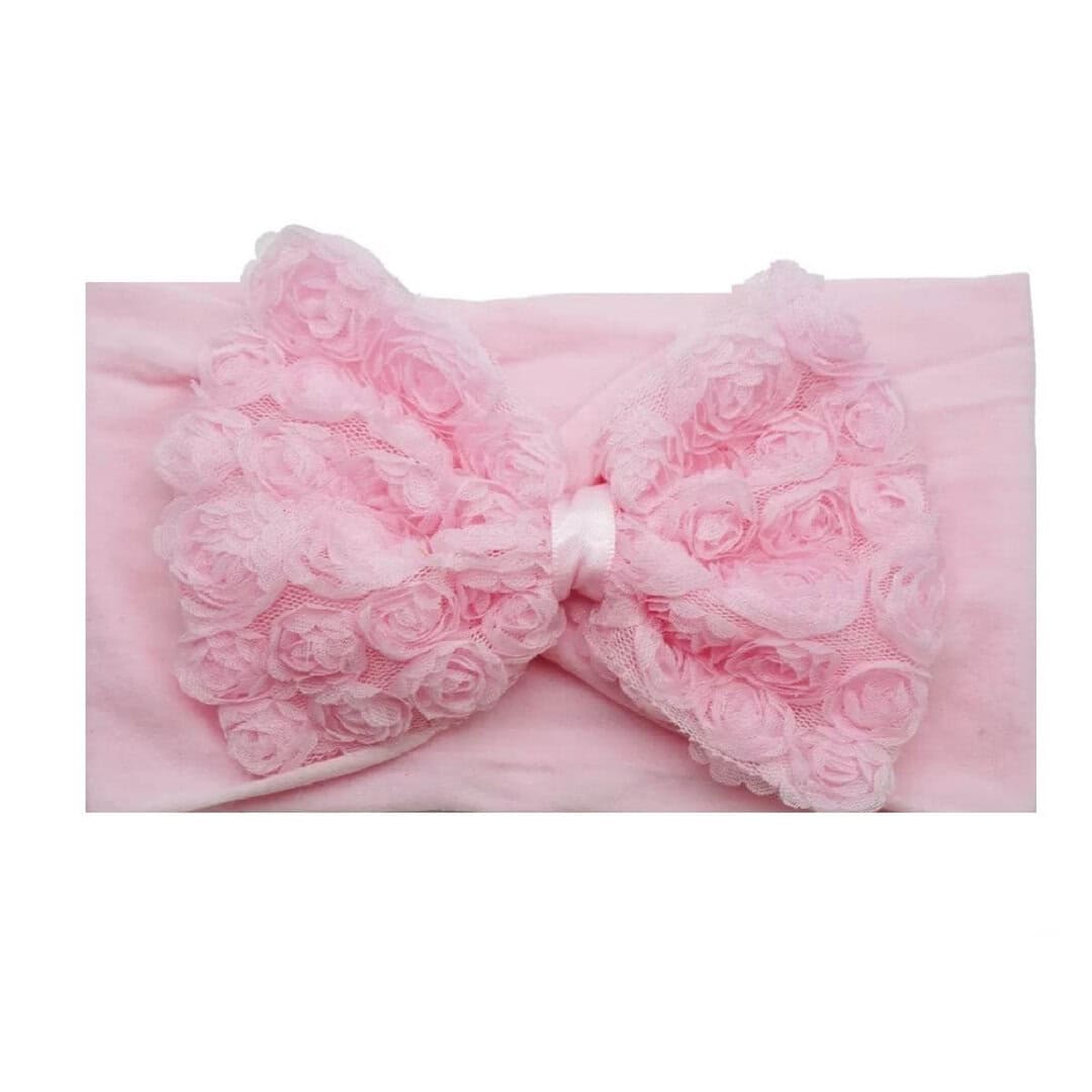Παιδική- Βρεφική Μαλακή κορδέλα μαλλιών με Τριανταφυλλένιο φιόγκο 4 inches Pink 0-6 χρονών