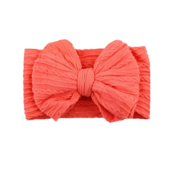Παιδική- Βρεφική Μαλακή κορδέλα μαλλιών Rib με μεγάλο φιόγκο 0-8 χρονών Coral