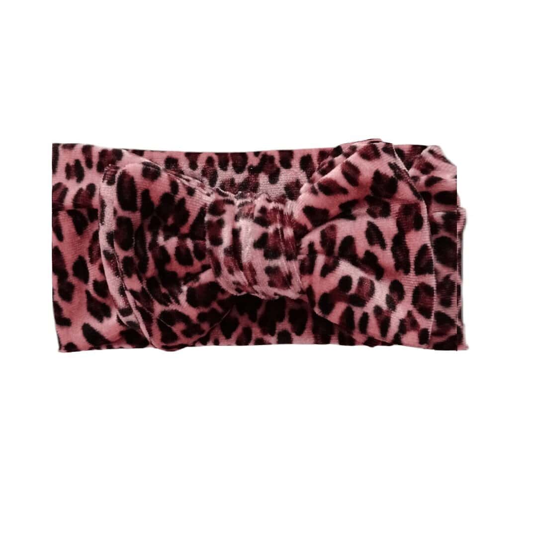 Παιδική- Βρεφική Μαλακή βελούδινη κορδέλα μαλλιών με leopard Pink φιόγκο animal print 0-8χρονών