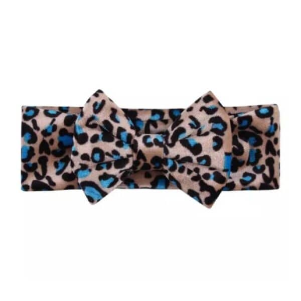 Παιδική- Βρεφική Μαλακή βελούδινη κορδέλα μαλλιών με leopard Blue φιόγκο animal print 5 μηνών-8χρονών