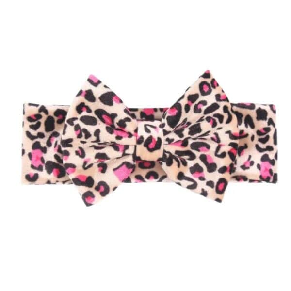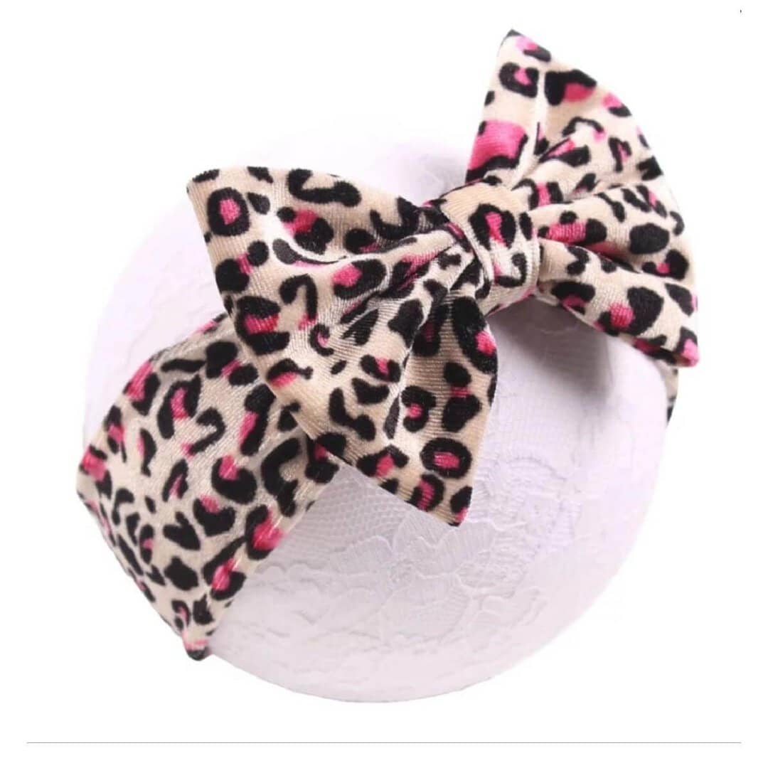 Παιδική- Βρεφική Μαλακή βελούδινη κορδέλα μαλλιών με leopard Pink φιόγκο animal print 5 μηνών-8χρονών