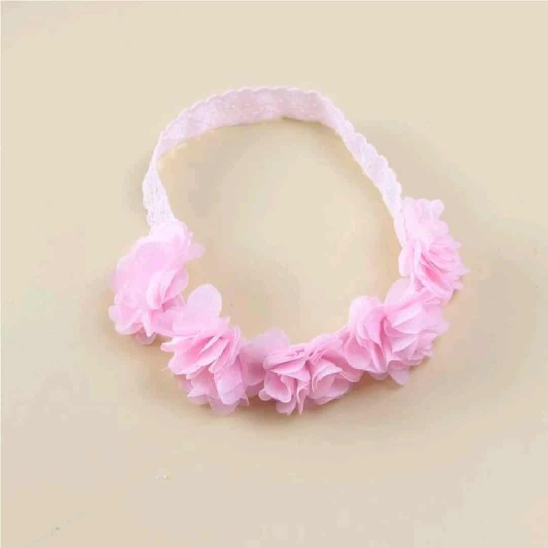 Παιδική- Βρεφική Ροζ κορδέλα με λουλούδια για βάφτιση και παρανυφάκια 0-5 χρονών