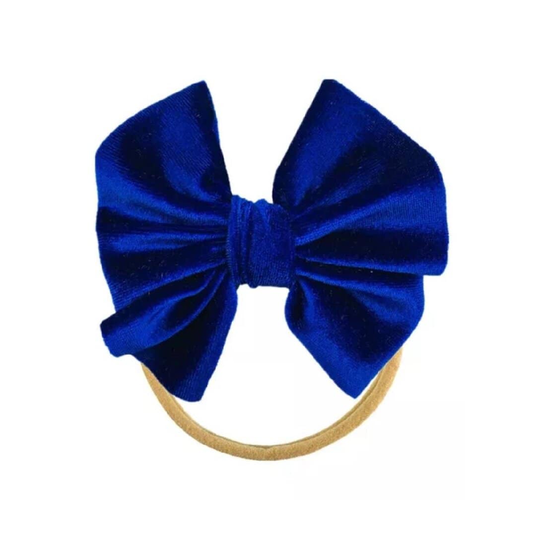 Παιδική- Βρεφική βελούδινη κορδέλα μαλλιών με φιόγκο 4,50 inches 0-7 χρονών Royal Blue