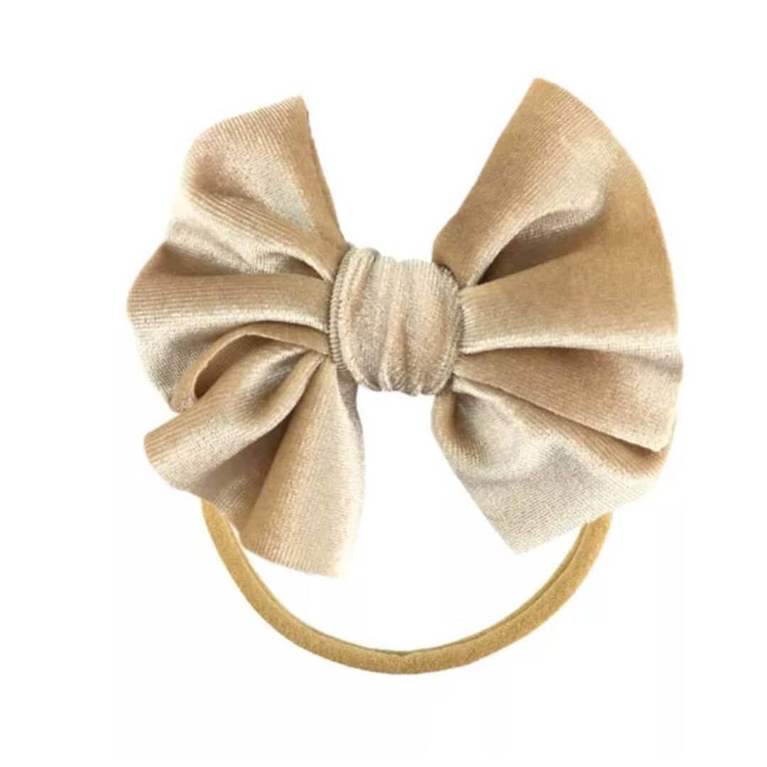 Παιδική- Βρεφική βελούδινη κορδέλα μαλλιών με φιόγκο 4,50 inches 0-7 χρονών Sand