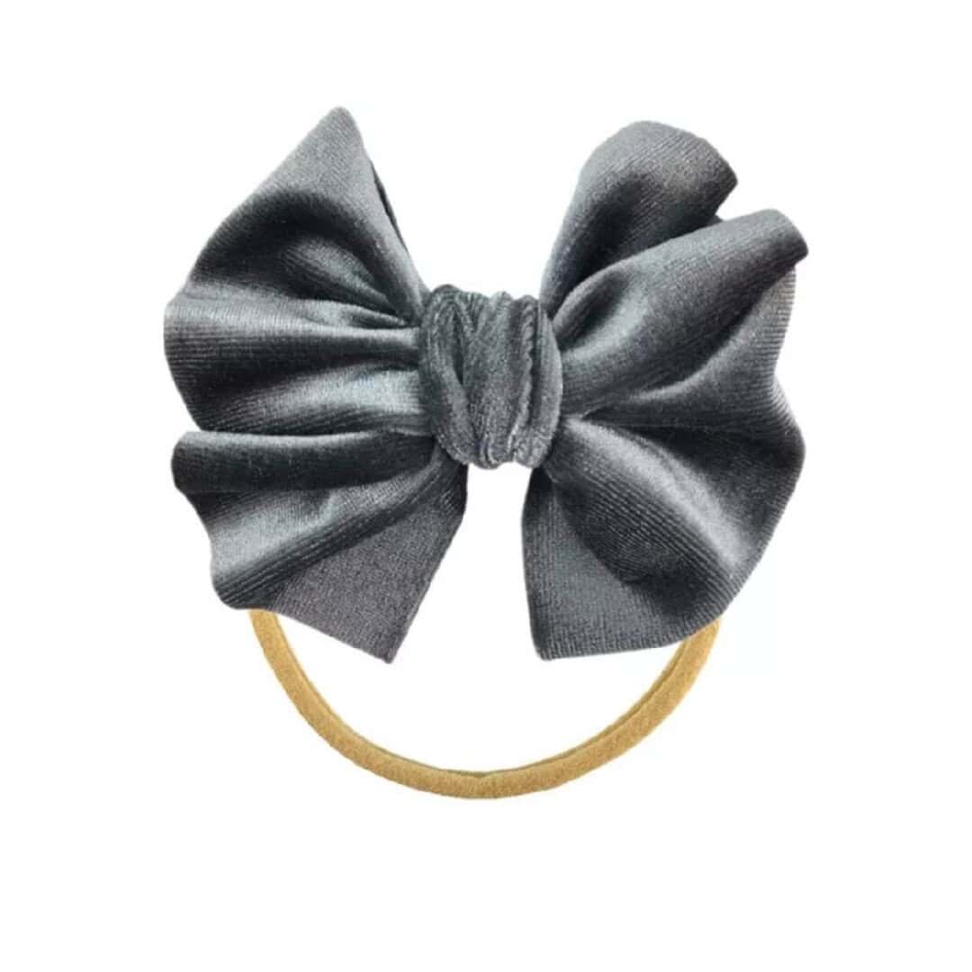 Παιδική- Βρεφική βελούδινη κορδέλα μαλλιών με φιόγκο 4,50 inches 0-7 χρονών Silver Gray