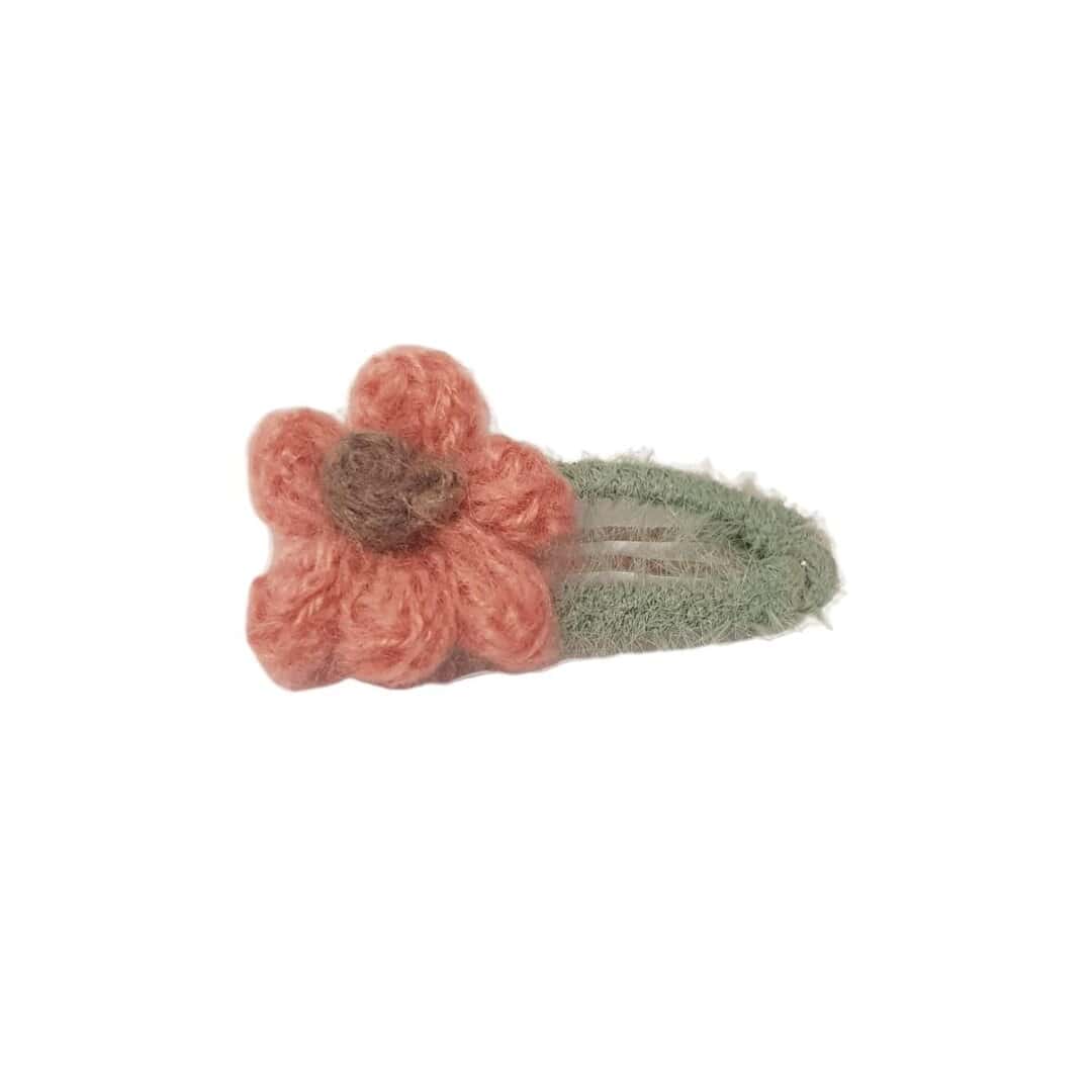 Παιδικό Clip -Κοκαλάκι μαλλιών πλεκτό λουλουδάκι – Dark Pink
