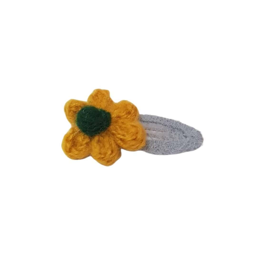 Παιδικό Clip -Κοκαλάκι μαλλιών πλεκτό λουλουδάκι -Yellow