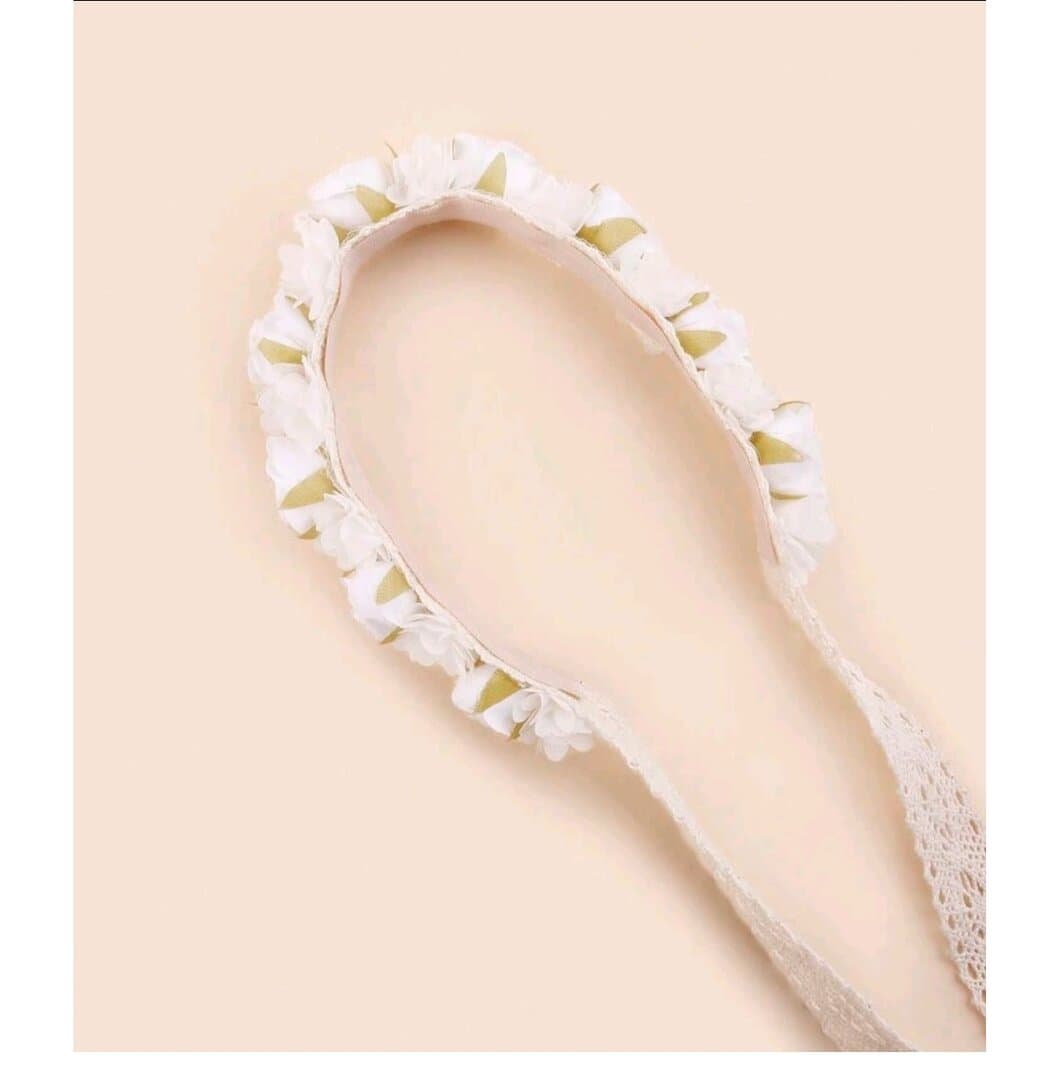 Παιδικό-βρεφικό λευκό στεφάνι κορδέλα με τριαντάφυλλα και δαντέλα για βάφτιση