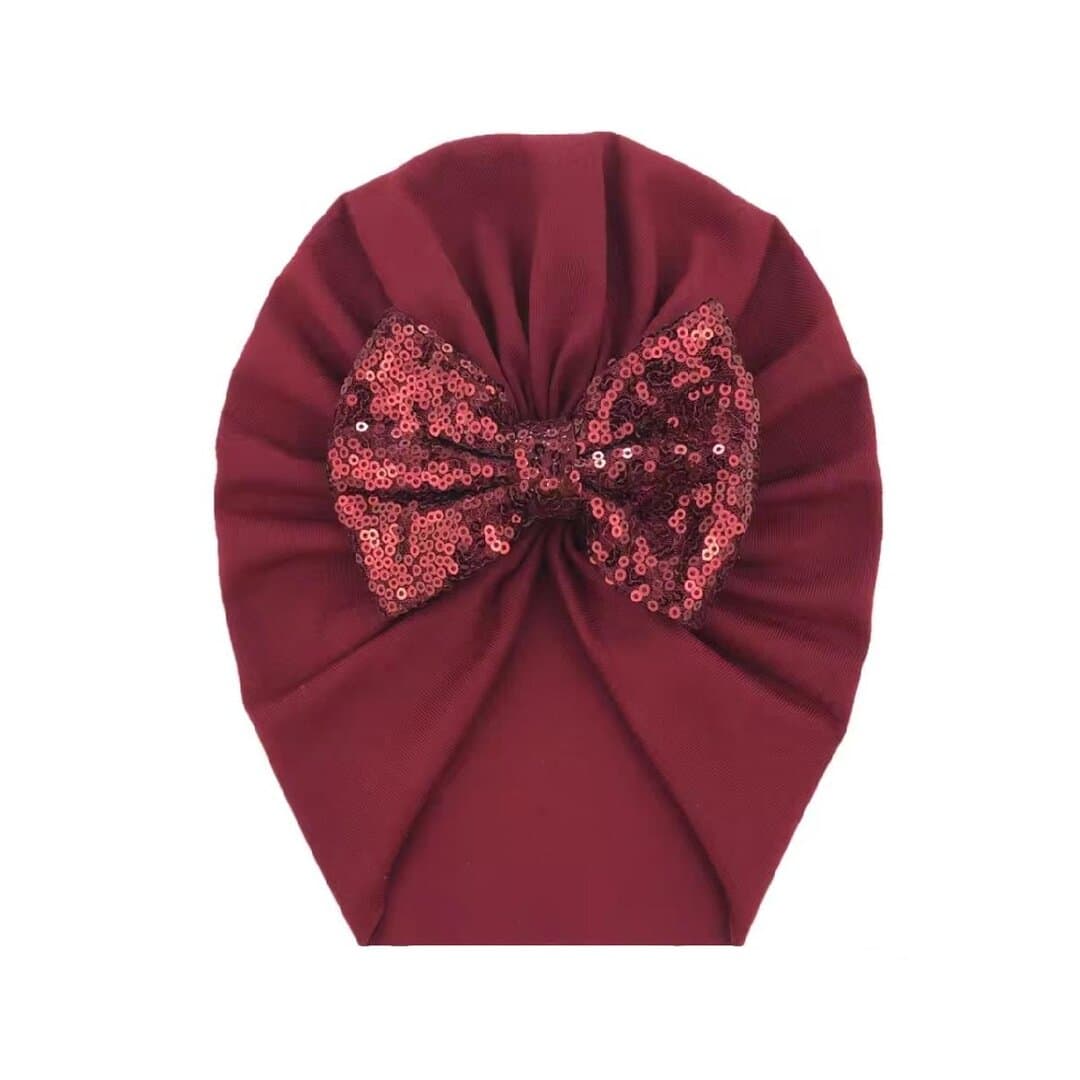 Παιδικό- Βρεφικό Μαλακό ελαστικό τουρμπάνι μαλλιών φιόγκο με πούλιες 0 -4χρονών – Bordeux
