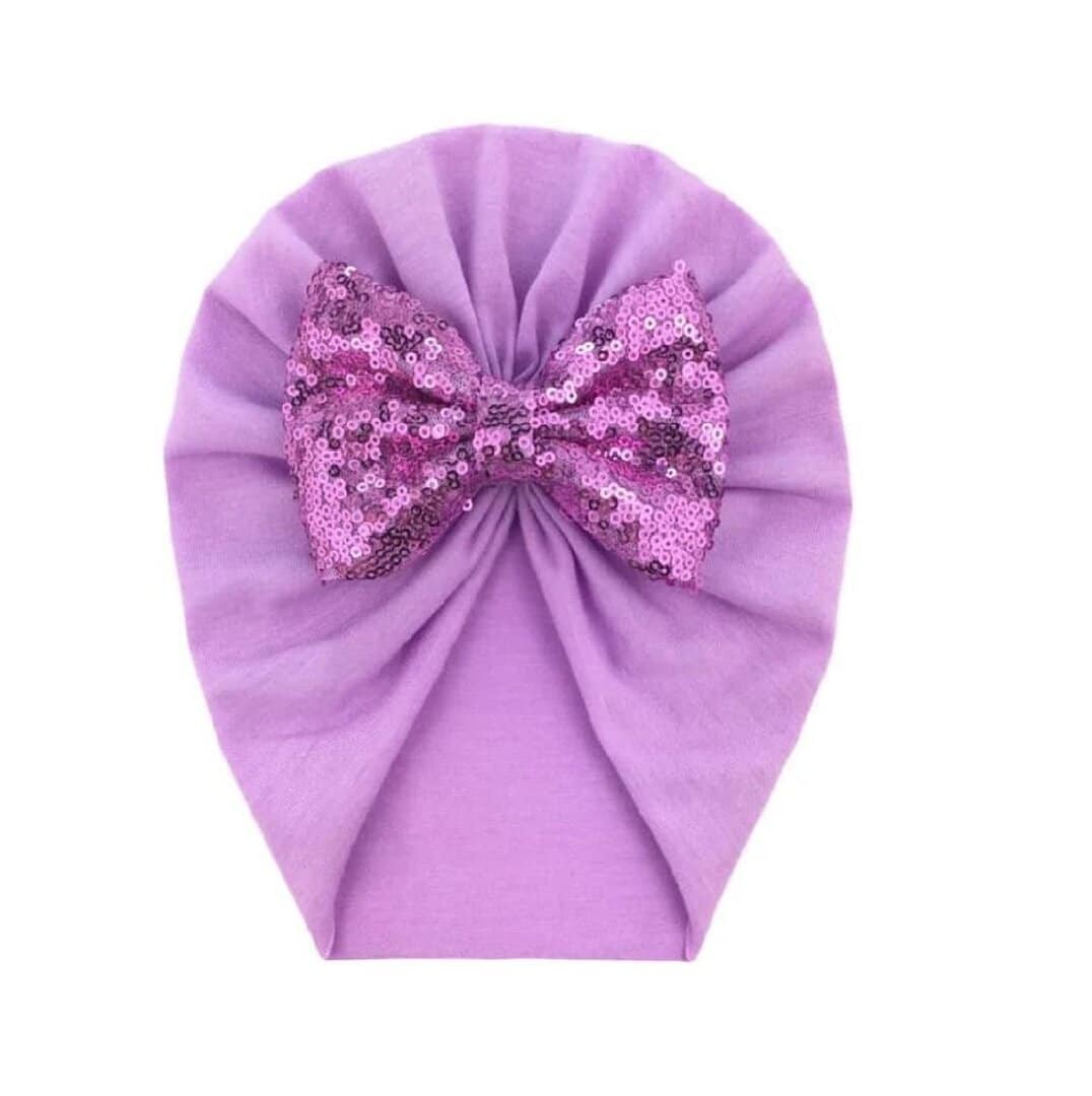 Παιδικό- Βρεφικό Μαλακό ελαστικό τουρμπάνι μαλλιών φιόγκο με πούλιες 0 -4χρονών – Lavender