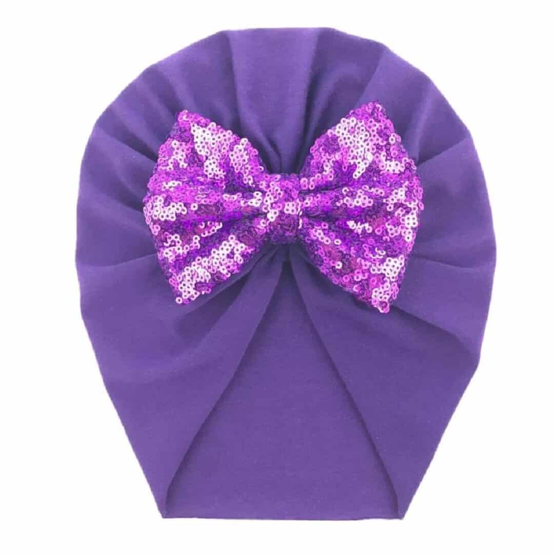Παιδικό- Βρεφικό Μαλακό ελαστικό τουρμπάνι μαλλιών φιόγκο με πούλιες 0-5χρονών – Deep Purple
