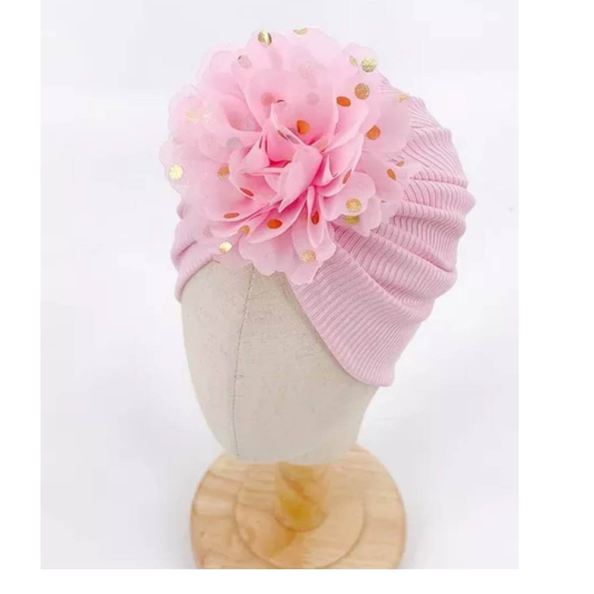 Παιδικό- Βρεφικό Μαλακό ελαστικό τουρμπάνι μαλλιών με Λουλούδι 3 μηνών -5χρονών – Pink