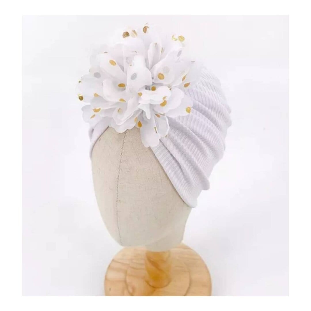 Παιδικό- Βρεφικό Μαλακό ελαστικό τουρμπάνι μαλλιών με Λουλούδι 3 μηνών -5χρονών – White