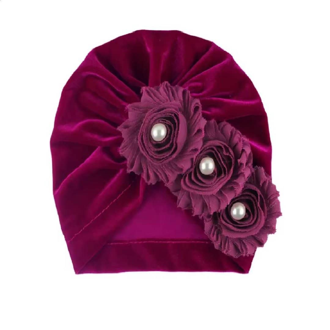 Παιδικό- Βρεφικό Μαλακό βελούδινο τουρμπάνι μαλλιών με λουλουδάκια 3 μηνών-2χρονών – Purple