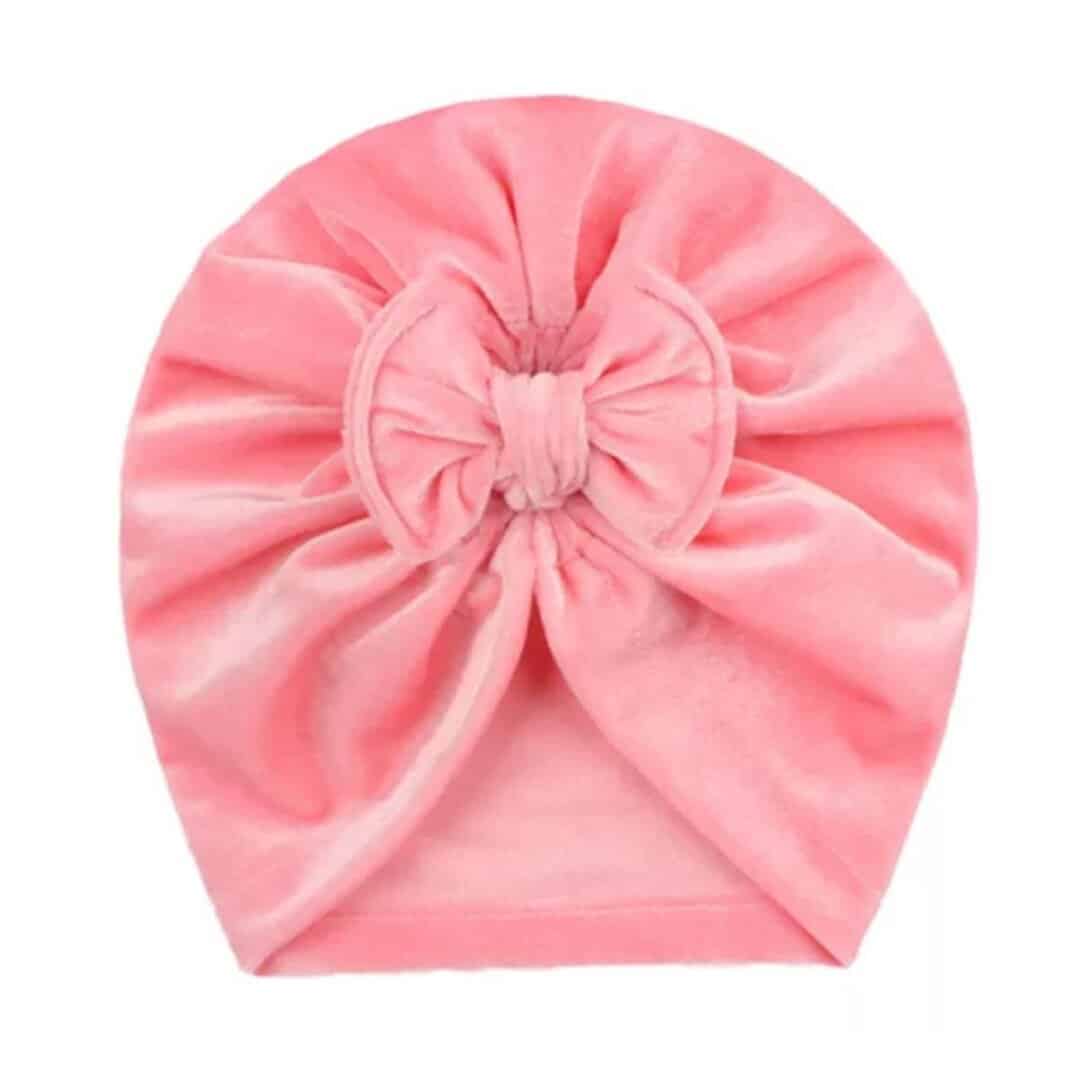 Παιδικό- Βρεφικό Μαλακό βελούδινο τουρμπάνι μαλλιών με φιόγκο 0-3 χρονών – Pink