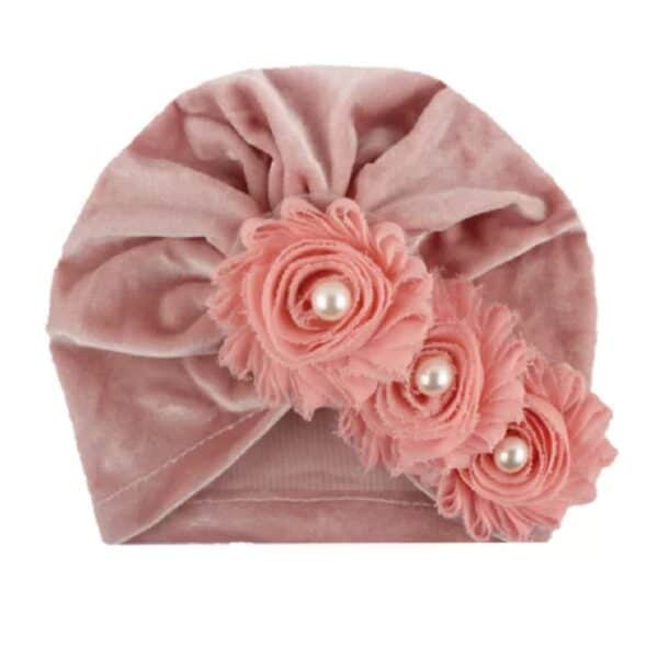 Παιδικό- Βρεφικό Μαλακό βελούδινο τουρμπάνι μαλλιών με λουλουδάκια 3 μηνών -2χρονών – Leather Pink