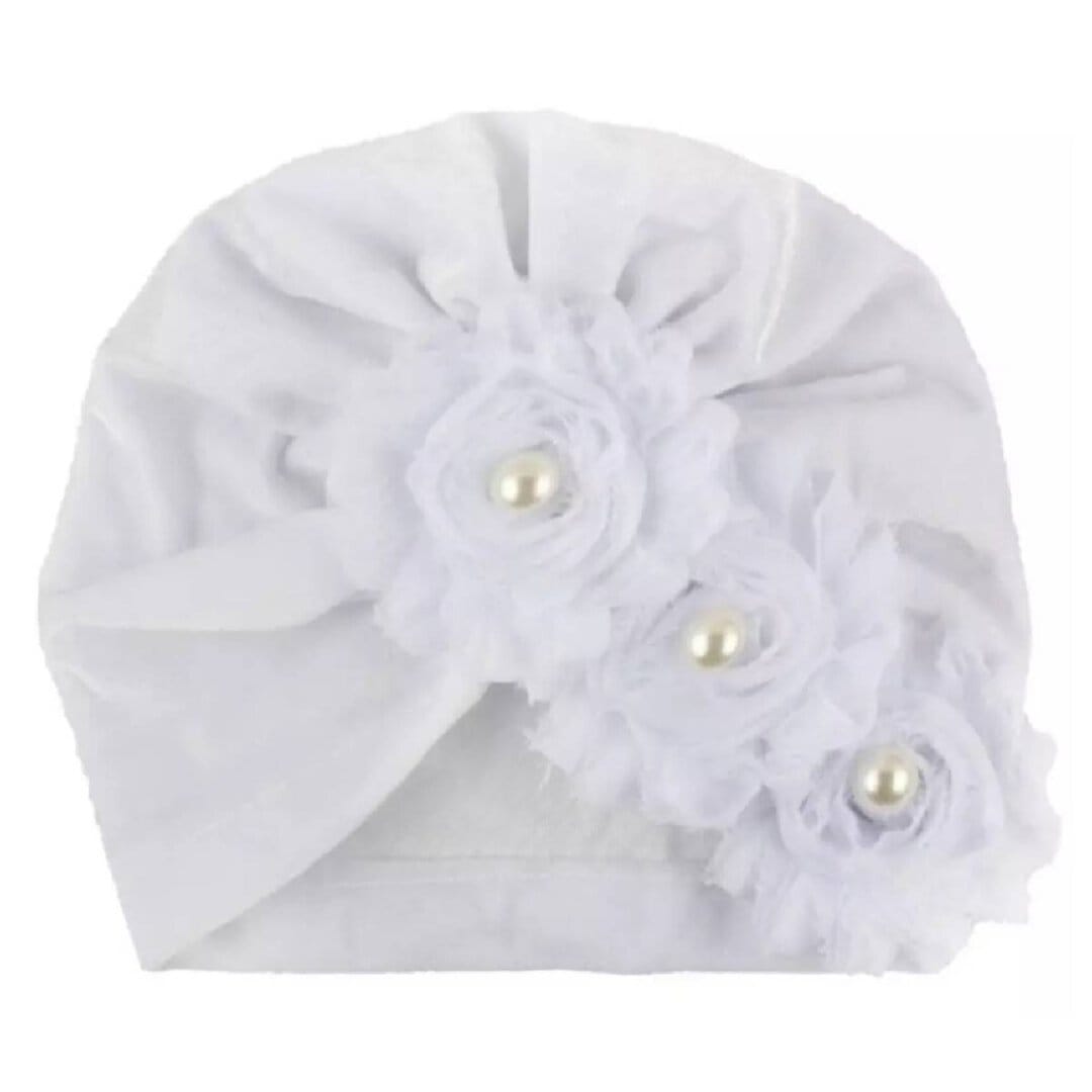 Παιδικό- Βρεφικό Μαλακό βελούδινο τουρμπάνι μαλλιών με λουλουδάκια 3 μηνών-2χρονών – White