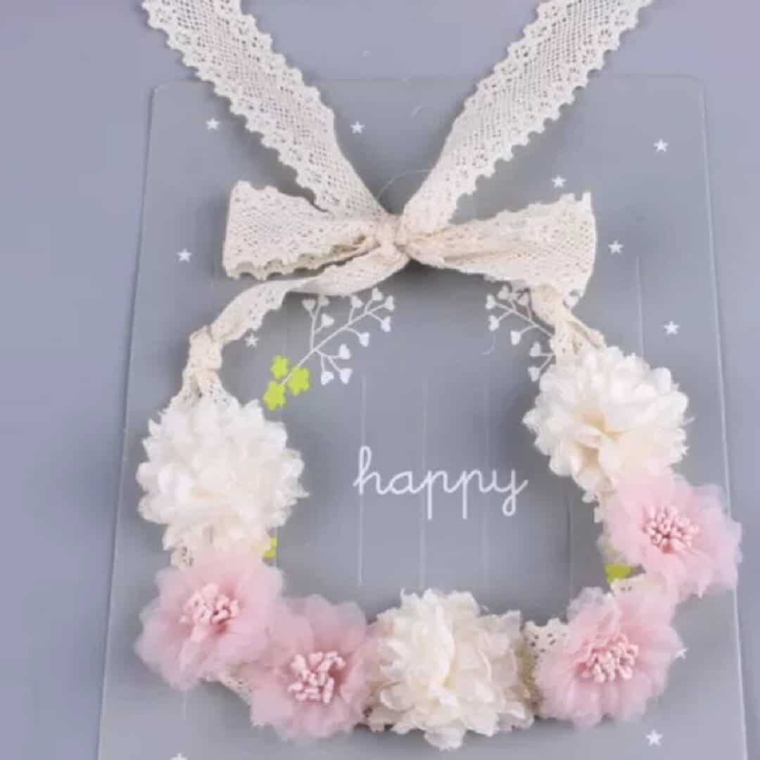 Παιδικό-βρεφικό Ροζ-ιβουάρ στεφάνι-κορδέλα λουλουδιών με δαντέλα για βάφτιση και παρανυφάκι
