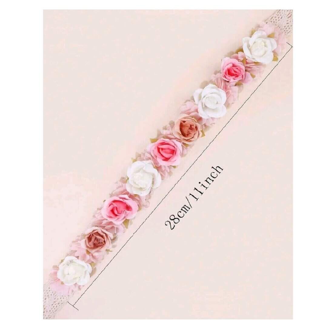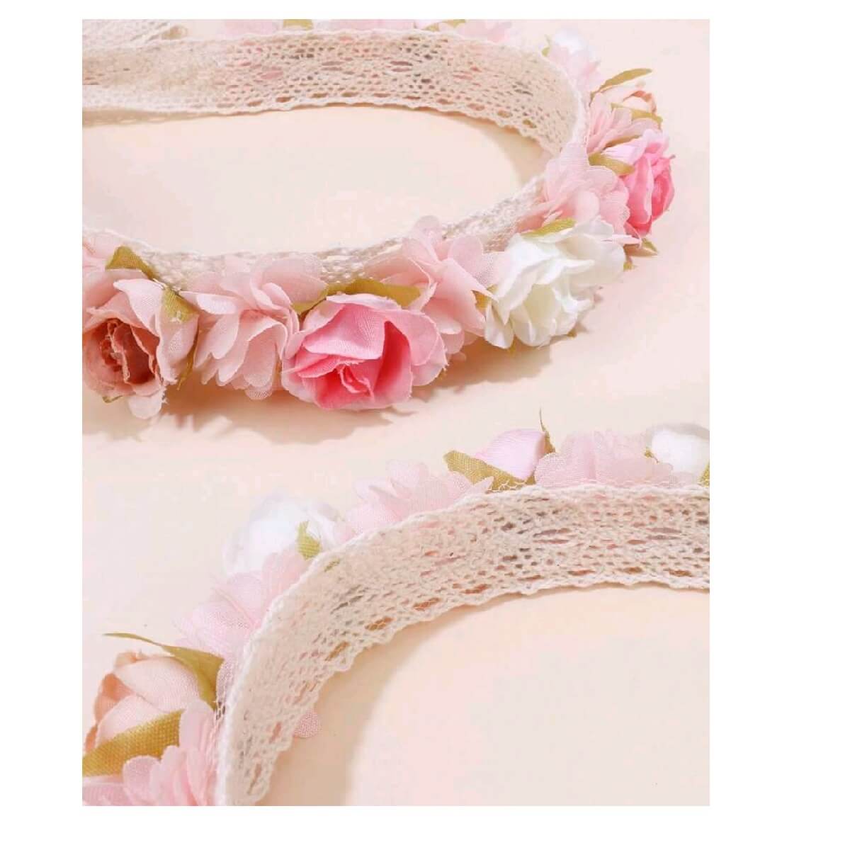 Παιδικό-βρεφικό στεφάνι κορδέλα με τριαντάφυλλα και δαντέλα για βάφτιση