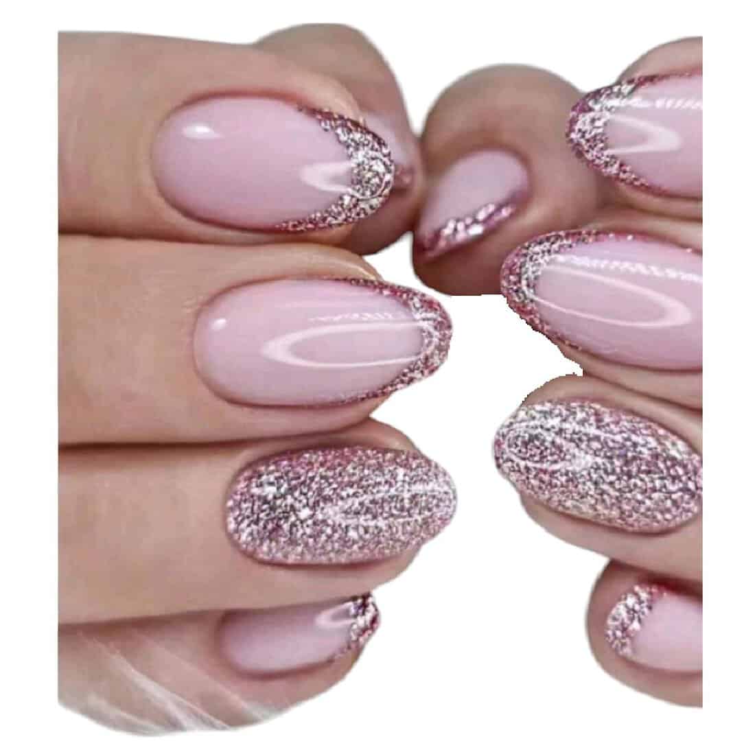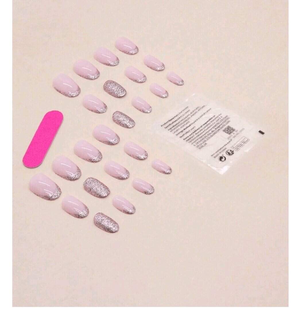Press-on Nails Ψεύτικα νύχια σετ nail art 24 Τμχ + 1 κόλλα- Pink Strass