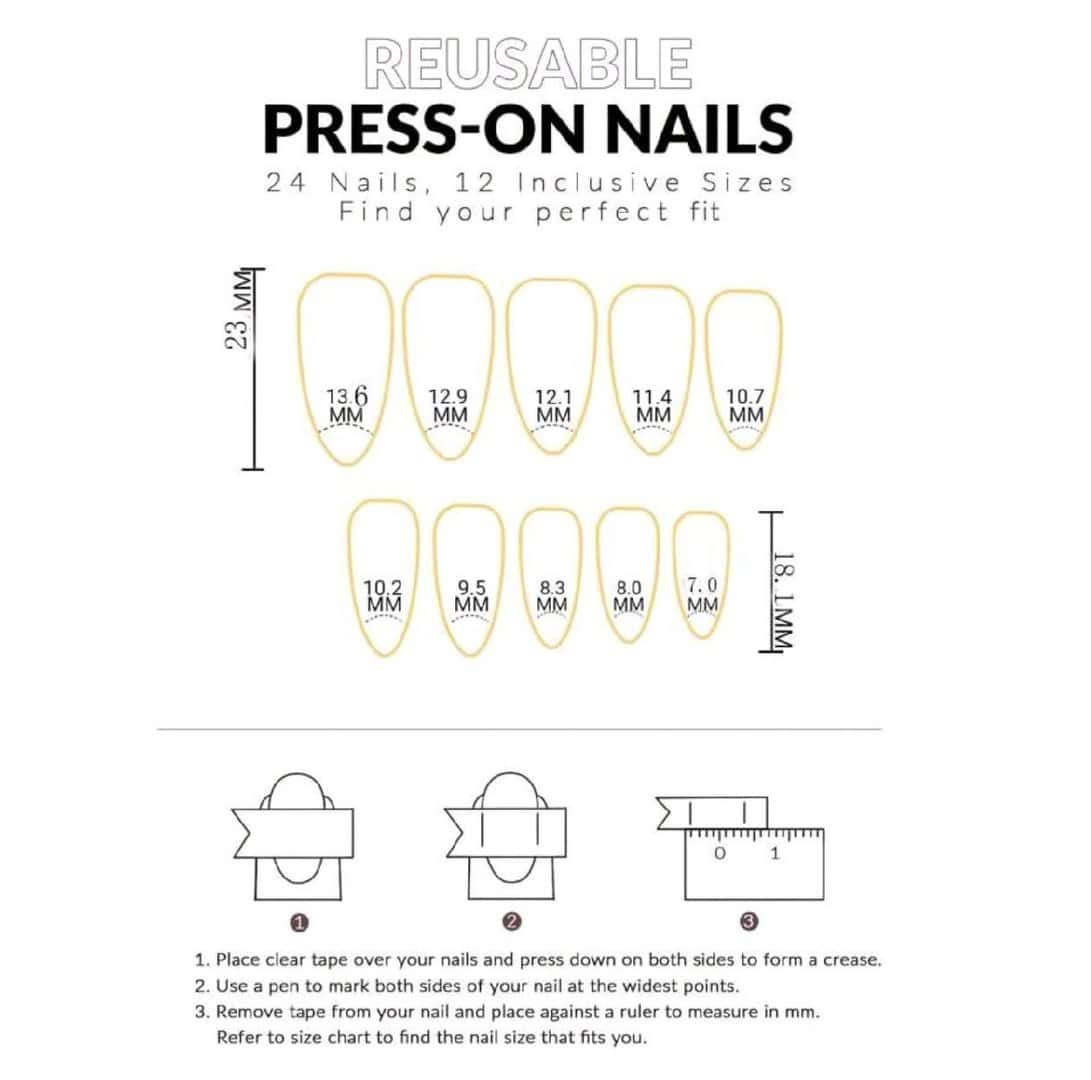 Διαθέτει 24 τμχ νυχιών για τοποθέτηση , 1 λίμα και αυτοκόλλητα τοποθέτησης