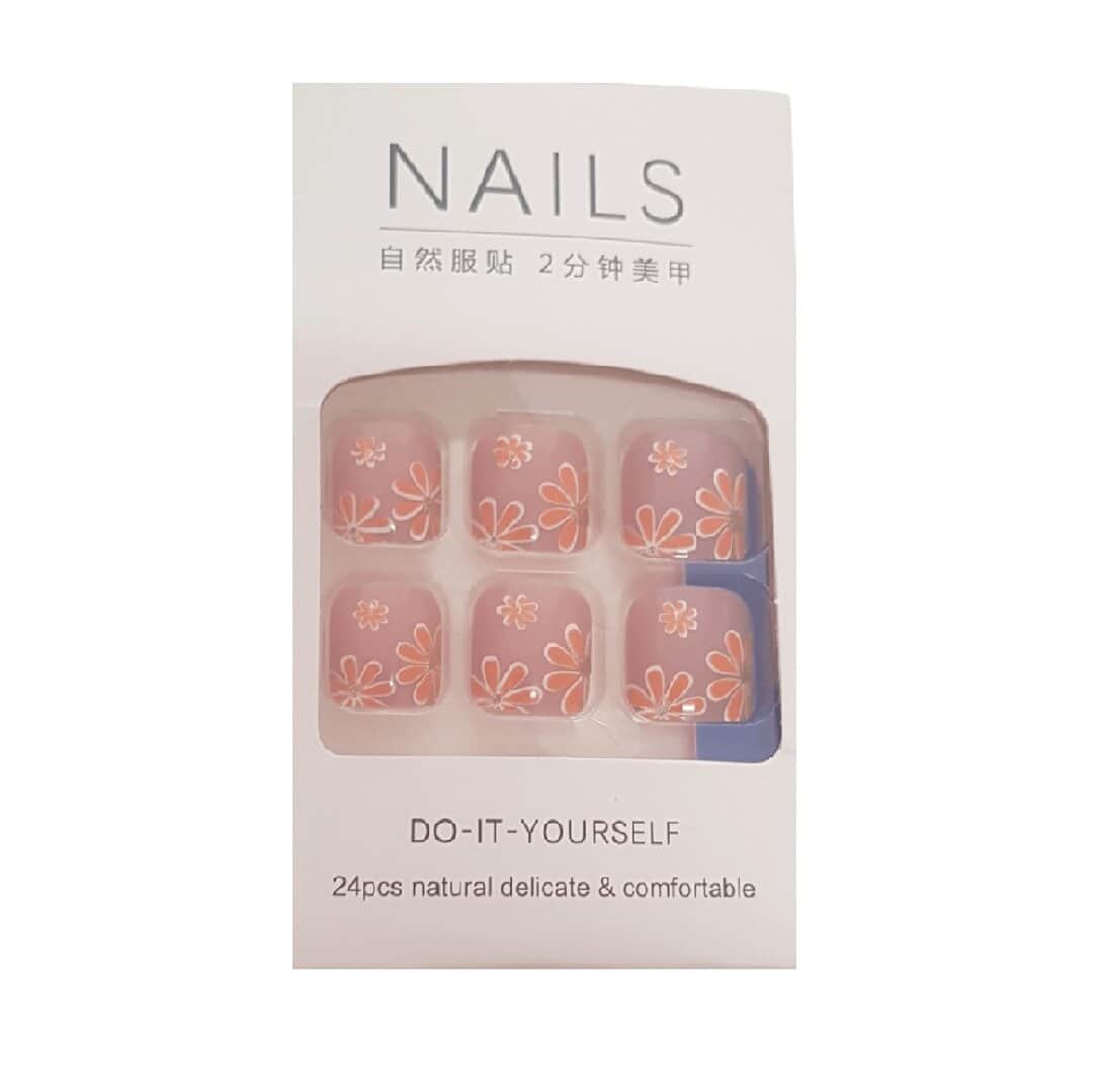 Pedicure Press-on Nails Ψεύτικα νύχια σετ nail art 24 Τμχ + 1 extra κόλλα- French Flowers