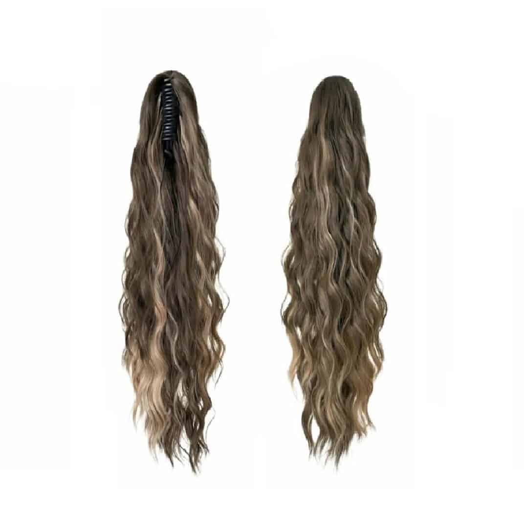 Ποστίς Αλογοουρά curly Ponytail συνθετική τρίχα υψηλής ποιότητας με κλάμερ- Καστανό με ανταύγειες χρώμα 65 cm