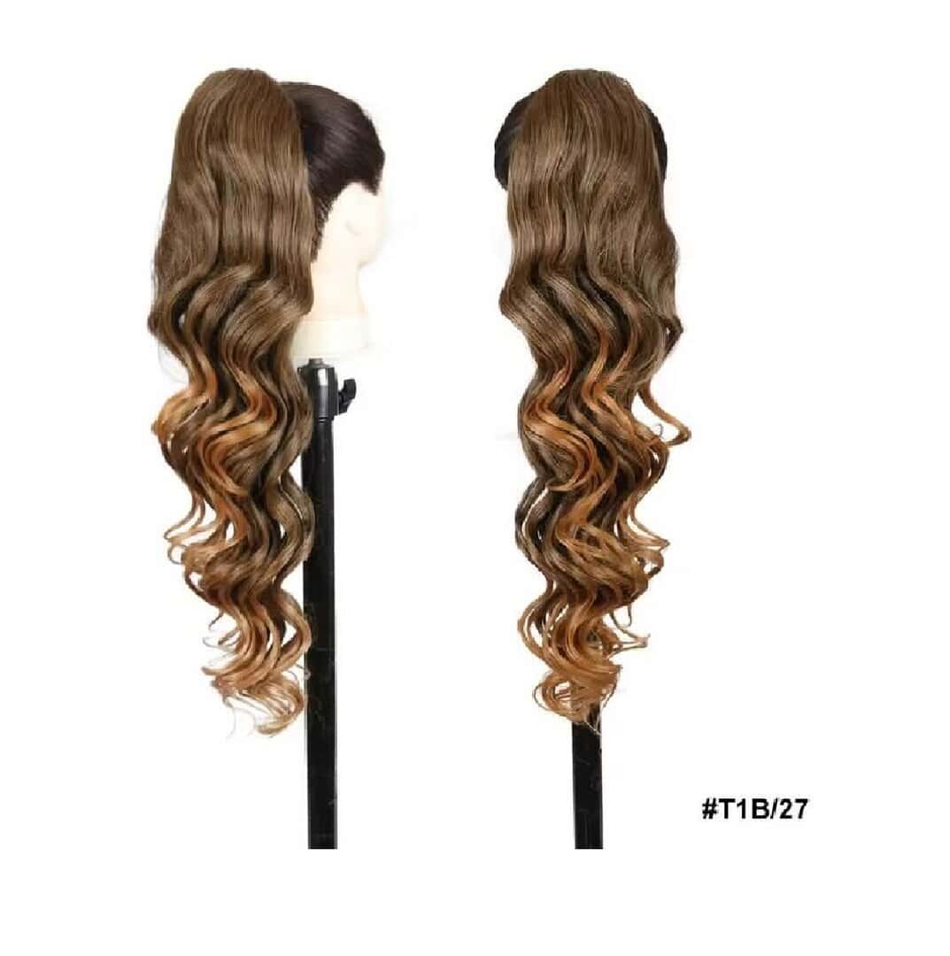 Ποστίς Αλογοουρά Ponytail συνθετική τρίχα Kanekalon υψηλής ποιότητας με χτενάκι φωλιά- Loose curl Καστανό Ombre #t1b/27 71cm