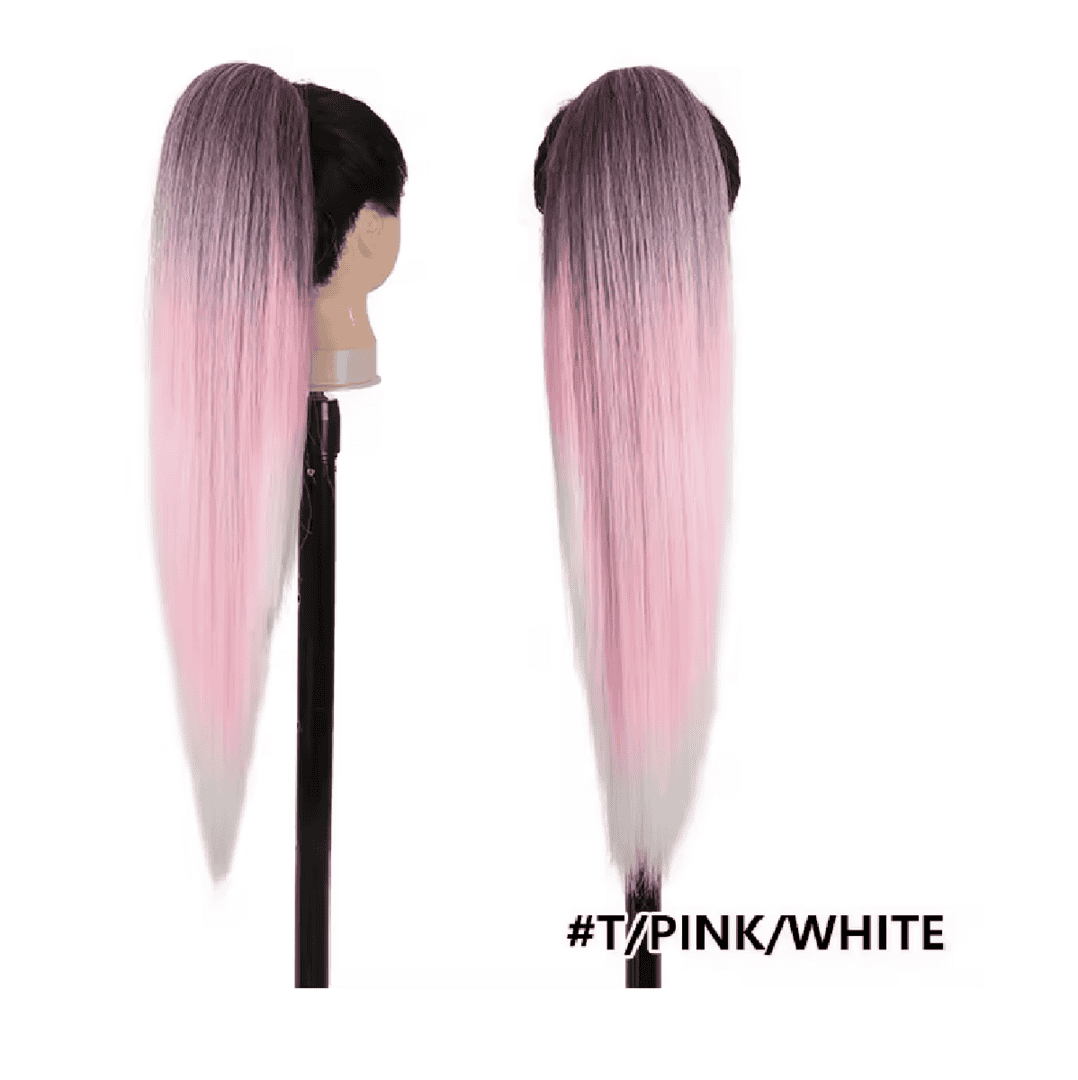 Ποστίς Αλογοουρά Ponytail συνθετική τρίχα Kanekalon υψηλής ποιότητας με Φωλιά και χτενάκι- Ίσια Ροζ Λευκό χρώμα #T/ Pink/White 71cm