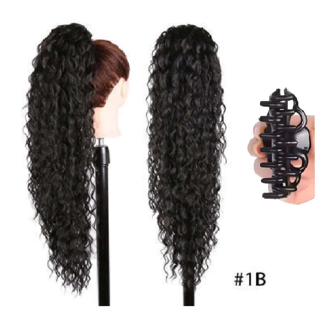 Ποστίς Αλογοουρά Ponytail συνθετική τρίχα Kanekalon υψηλής ποιότητας με Κλάμερ – Water Wave Μαύρο # 1B 71cm