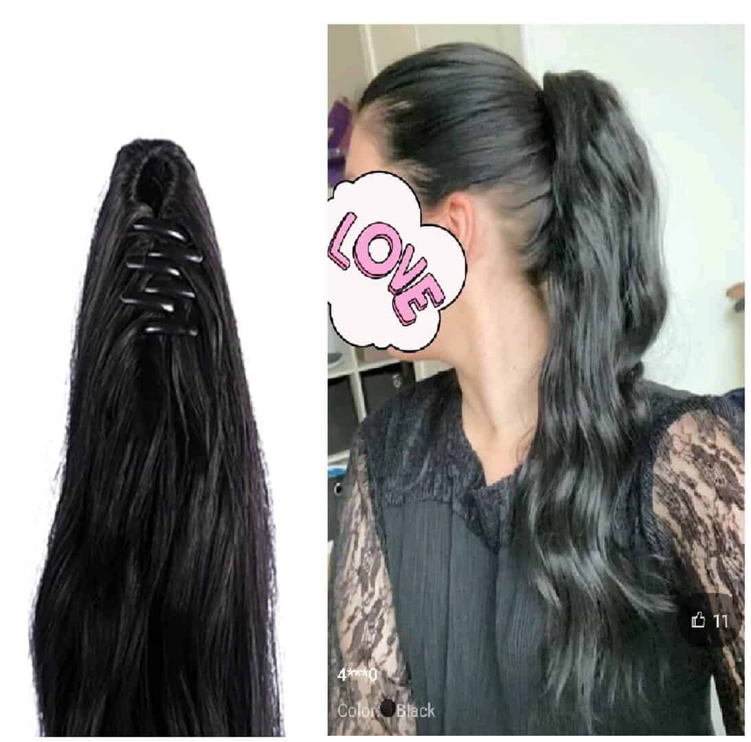 Αλογοούρα συνθετικής τρίχα υψηλής ποιότητας με κλάμερ εύκολης τοποθέτησης 22 Inches – Μαύρο χρώμα