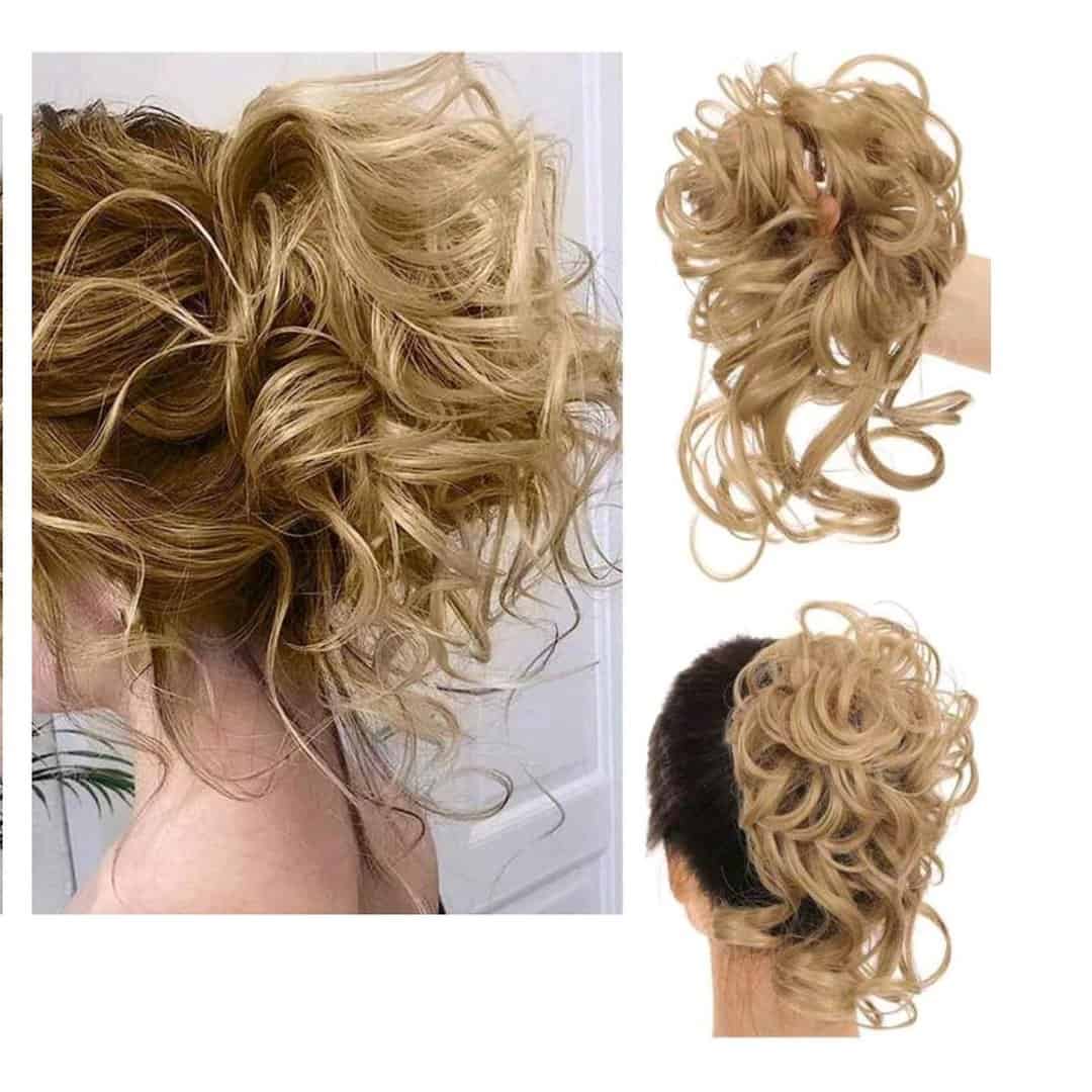 Ποστίς Κότσος με λάστιχο και αφέλειες συνθετική τρίχα υψηλής ποιότητας – Golden ξανθό με αφέλειες