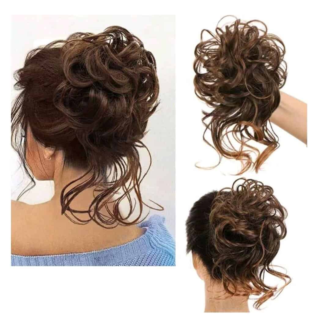 Ποστίς Κότσος με λάστιχο και αφέλειες συνθετική τρίχα υψηλής ποιότητας – Καστανό με αφέλειες