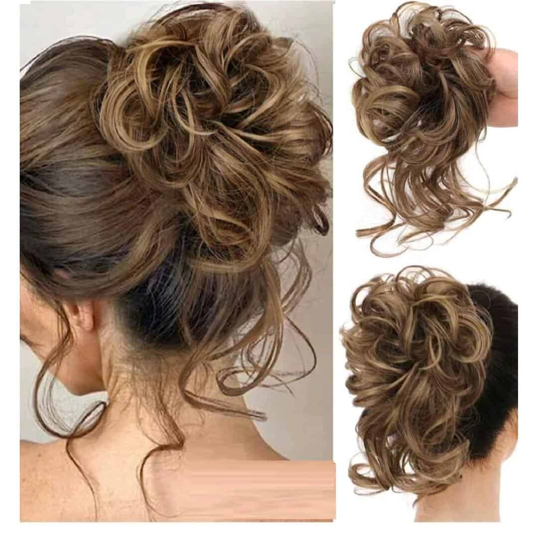 Ποστίς Κότσος με λάστιχο και αφέλειες συνθετική τρίχα υψηλής ποιότητας – Καστανό με ανταύγιες και με αφέλειες