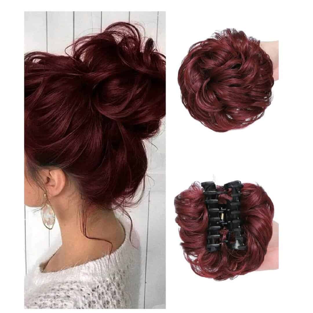 Ποστίς Κότσος συνθετική τρίχα υψηλής ποιότητας με κλάμερ τοποθέτησης- Σκούρο κόκκινο