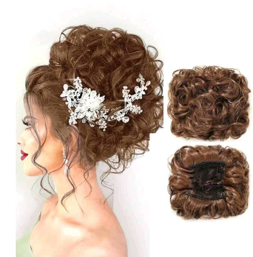 Ποστίς Κότσος συνθετική τρίχα υψηλής ποιότητας με μεγάλο όγκο και χτενάκια τοποθέτησης -Ανοιχτό καστανό