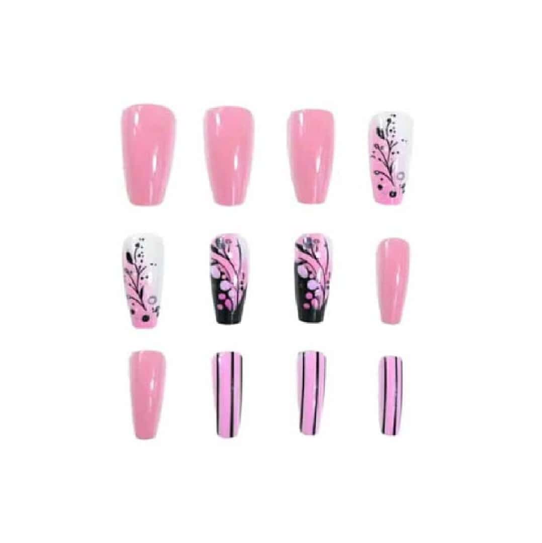 Press-on Nails Ψεύτικα νύχια σετ nail art 24 Τμχ + 1 κόλλα- Pink Designs