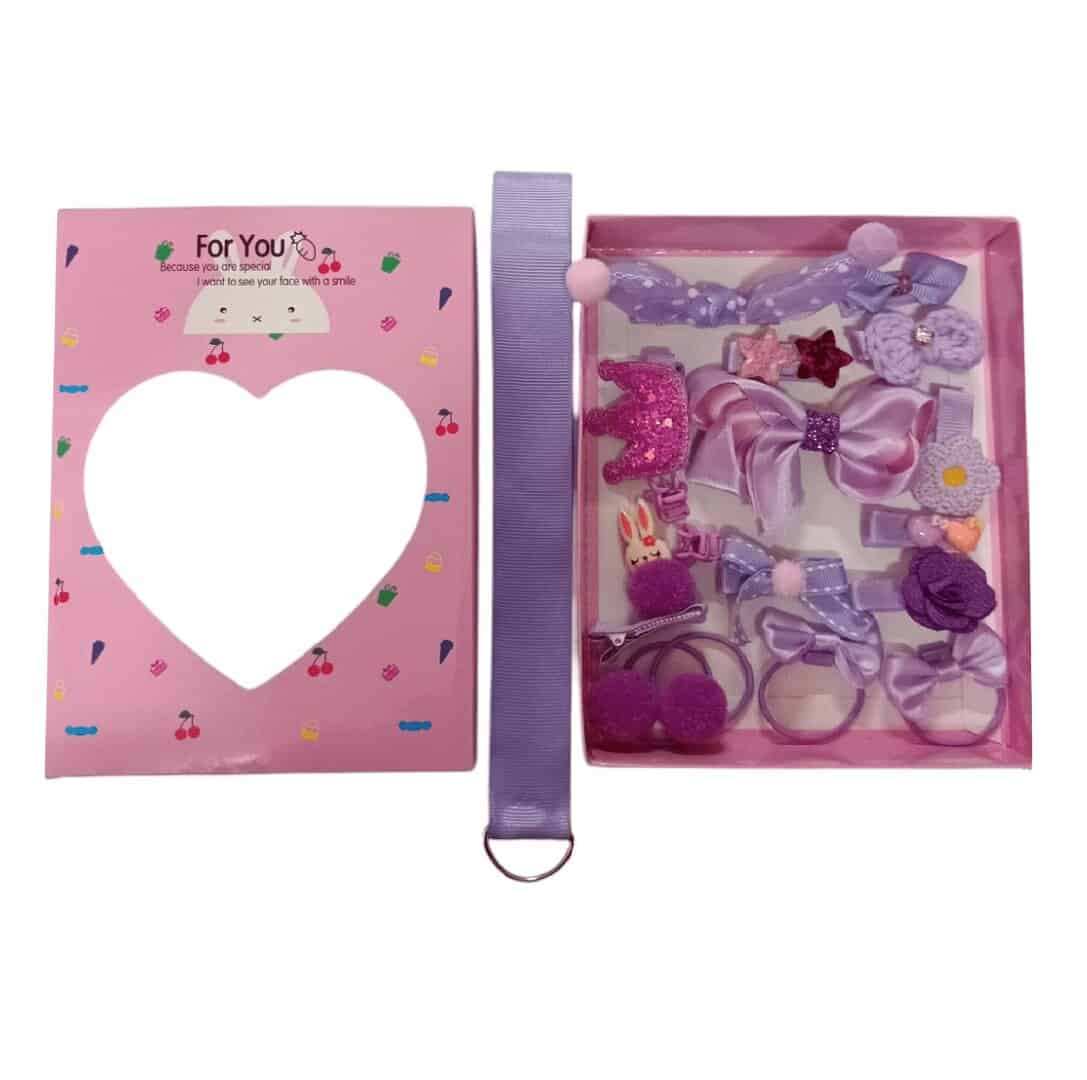 Ροζ Κουτί με 18 παιδικά κλιπ-κοκαλάκια Purple