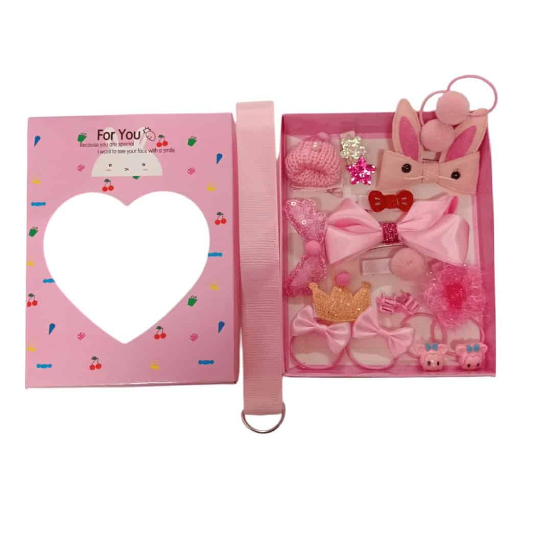 Ροζ κουτί σετ 18 κλιπ-κοκαλάκια για κορίτσια
