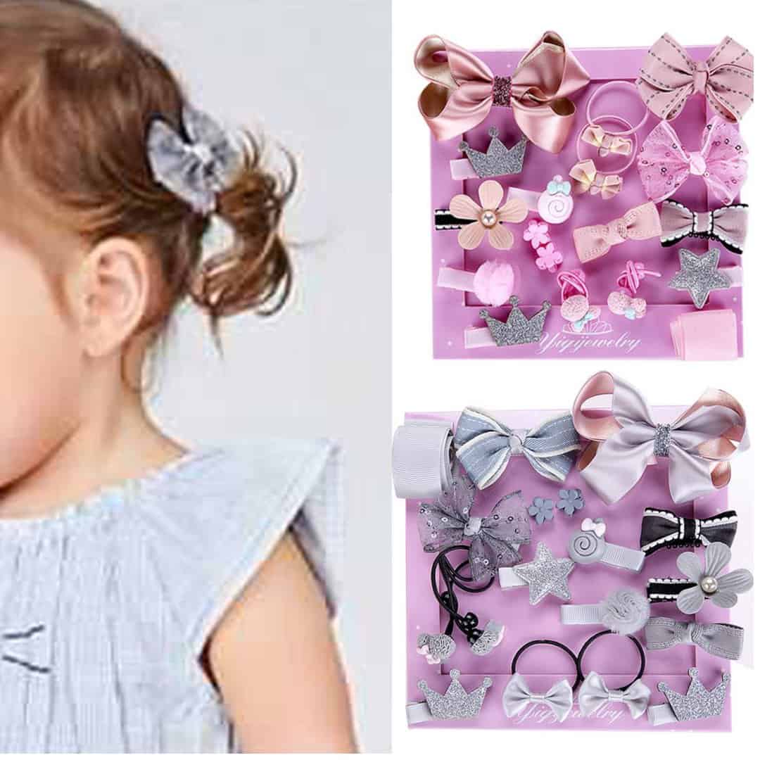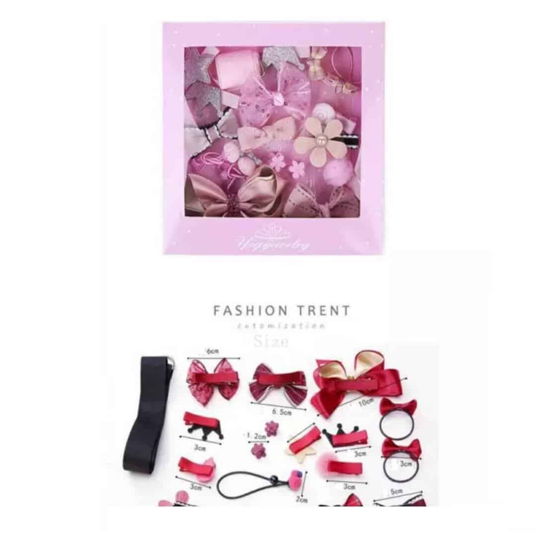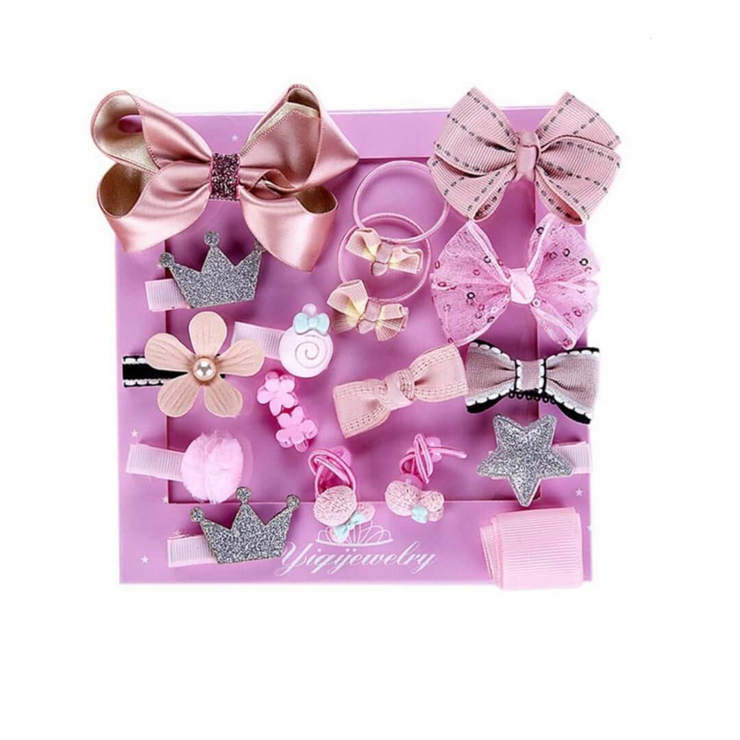 Ροζ κουτί σετ 18 κλιπ-κοκαλάκια για κορίτσια