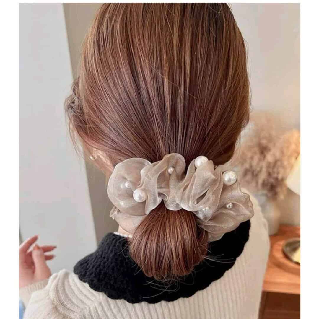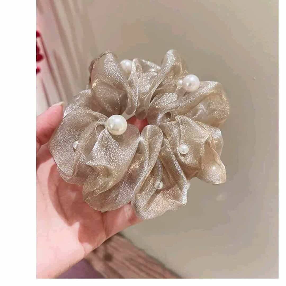 Scrunchies-Κοκαλάκι λάστιχο μαλλιών Large glow Pearls