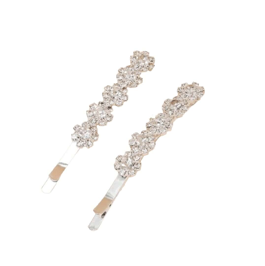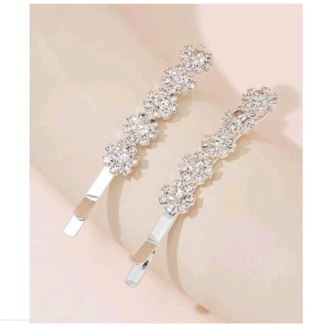 Σετ 2 τμχ Νυφικό κλιπ – τσιμπιδάκι με κρυσταλλάκια σε ασημί χρώμα