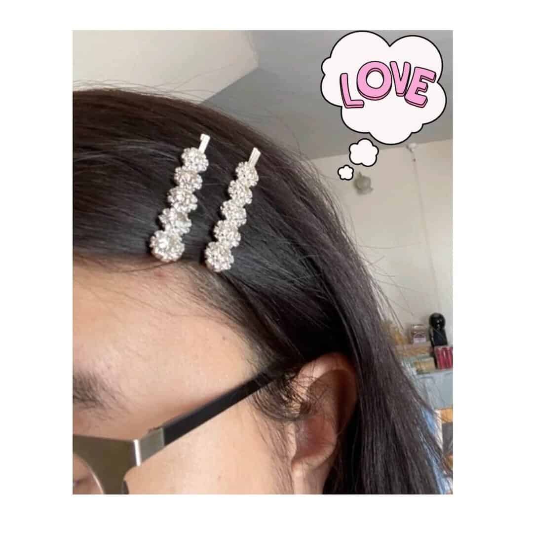 Αστραφτερό κλιπ- τσιμπιδάκι σετ 2 τμχ μεταλλικό σε ασημί χρώμα και κρυσταλλάκια