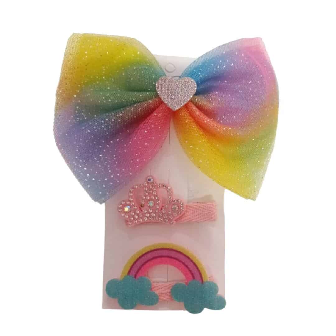 Σετ 3 τμχ Clip -Κοκαλάκι μαλλιών Bow Rainbow μεγάλος φιόγκος