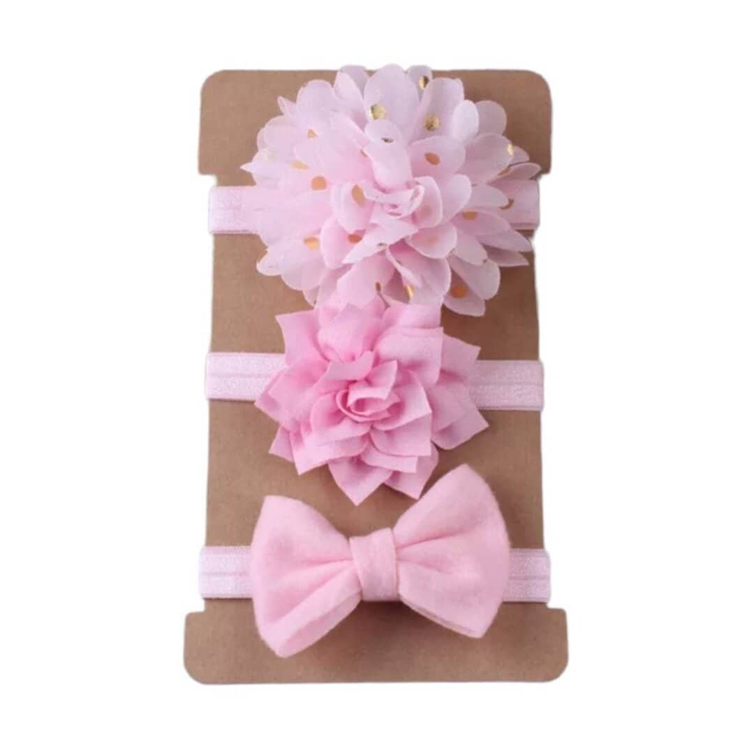 Σετ 3τμχ Παιδική- Βρεφική Μαλακή κορδέλα Ροζ 0-7 χρονών