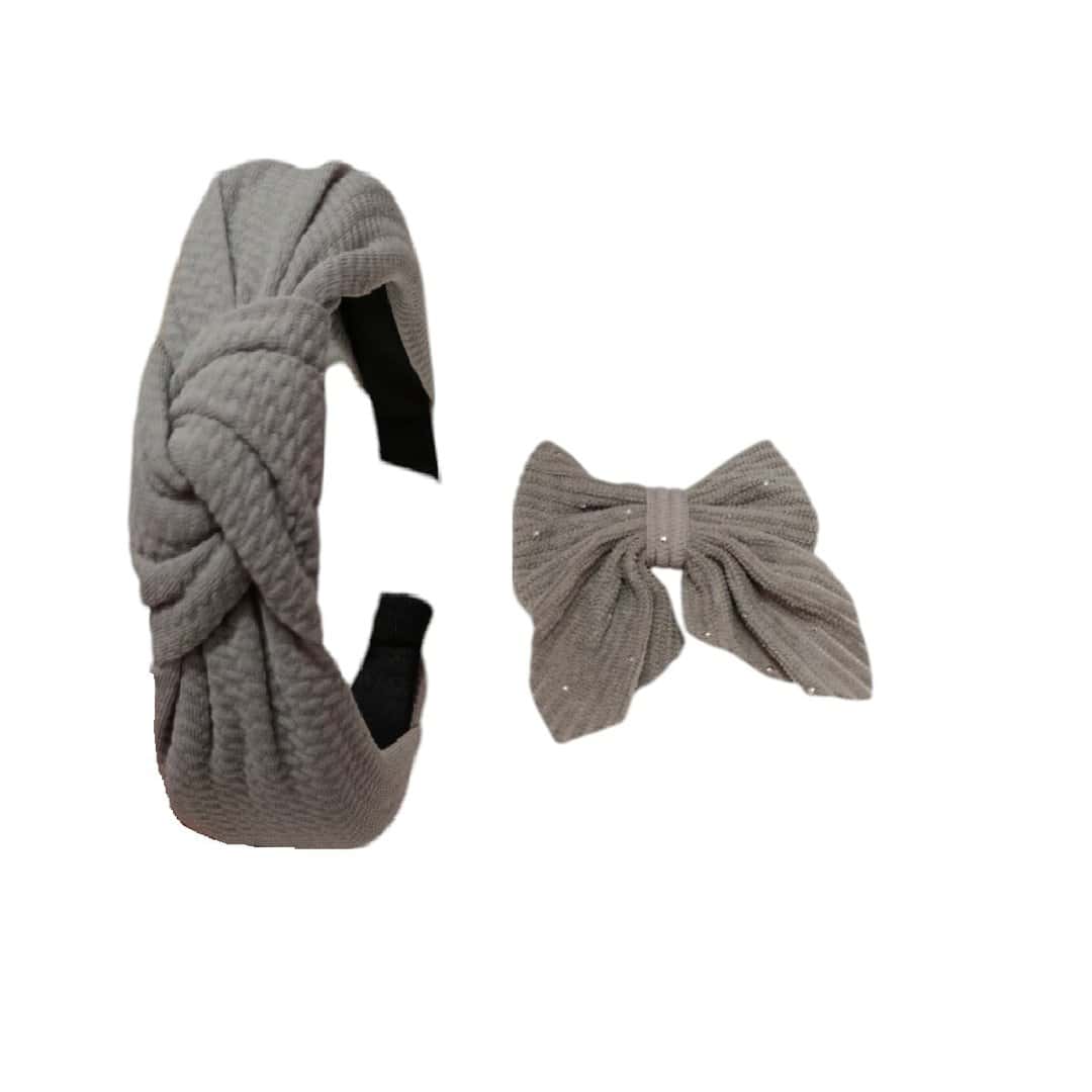Σετ Μαμά-Κόρη Γυναικεία Στέκα με κλιπ φιόγκο grey strass 7cm με προστασία – Grey