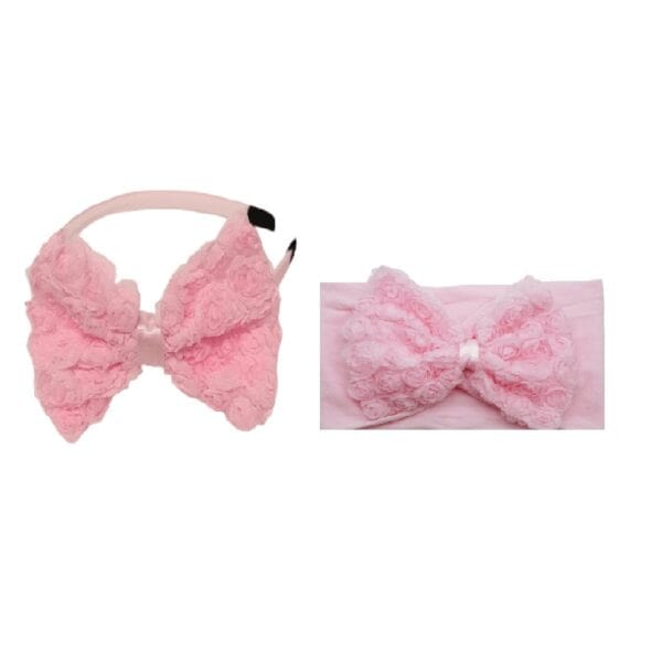 Σετ Μαμά-Κόρη Γυναικεία Στέκα με τριανταφυλλένιο φιόγκο και βρεφική-παιδική κορδέλα 0-8 χρονών – Pink